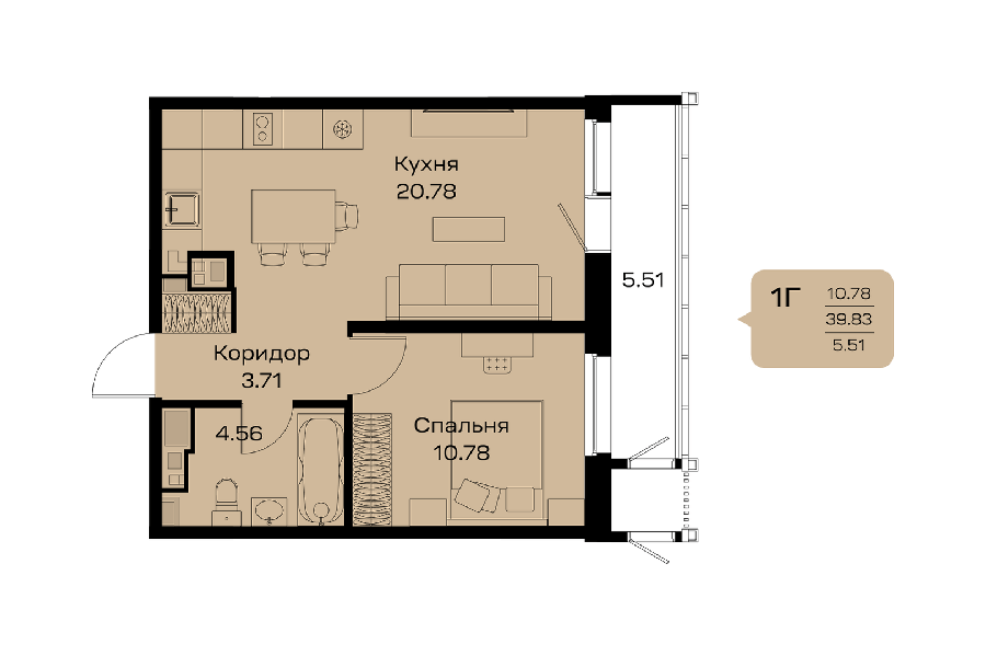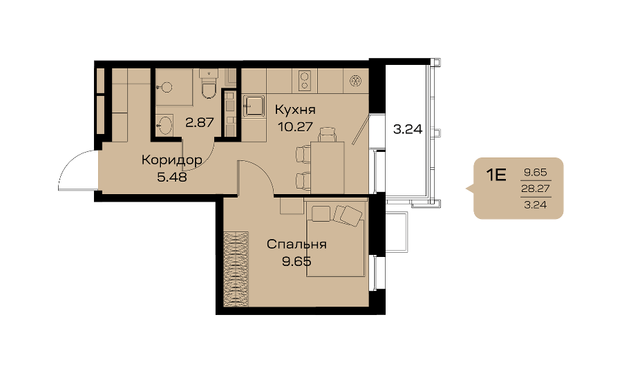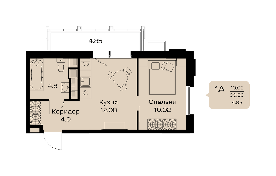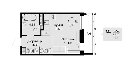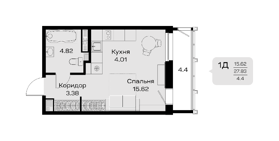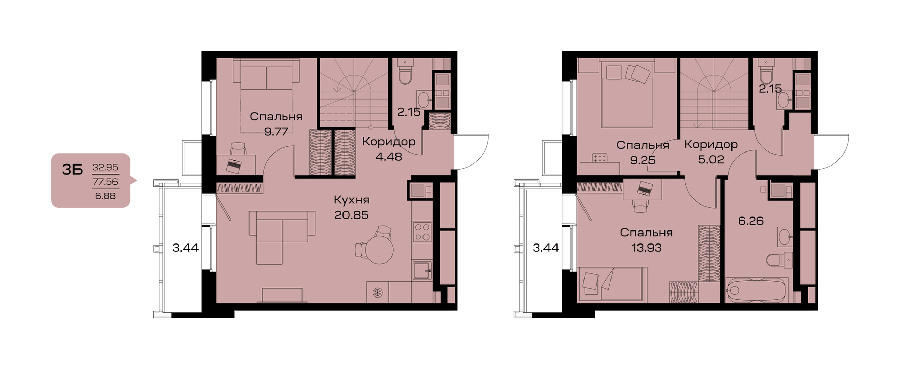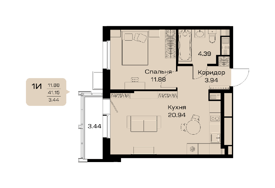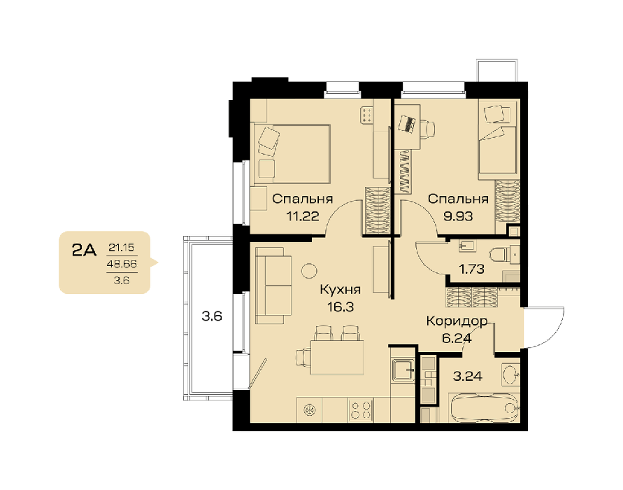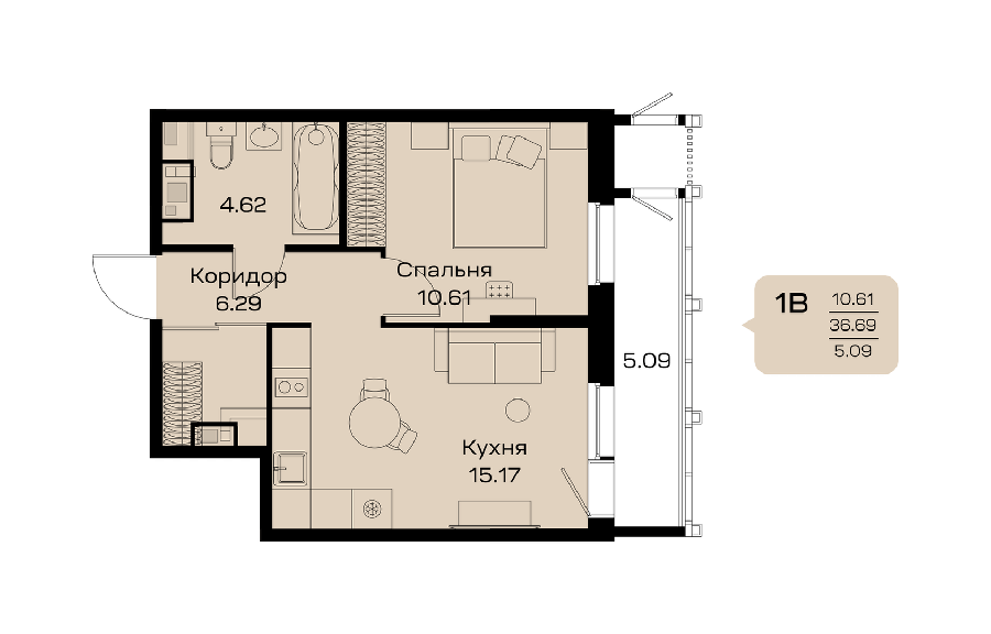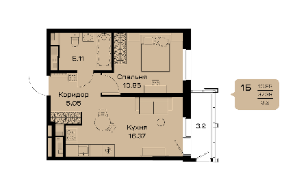 Площадь от 32.69 м2