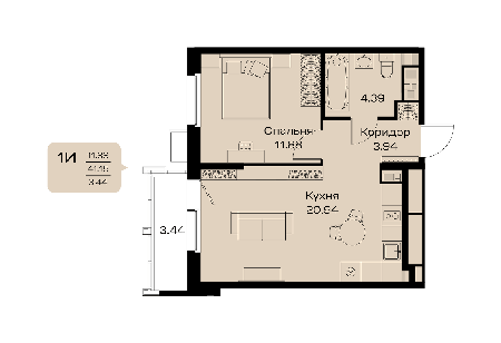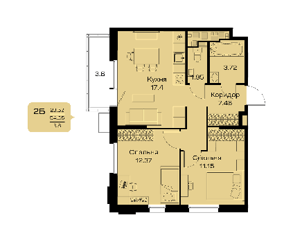 Площадь от 31.96 м2
