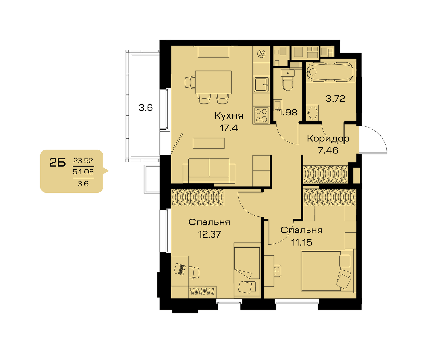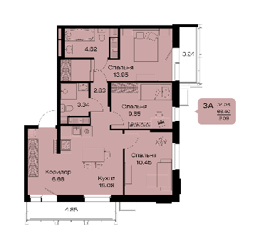 Площадь от 52.85 м2