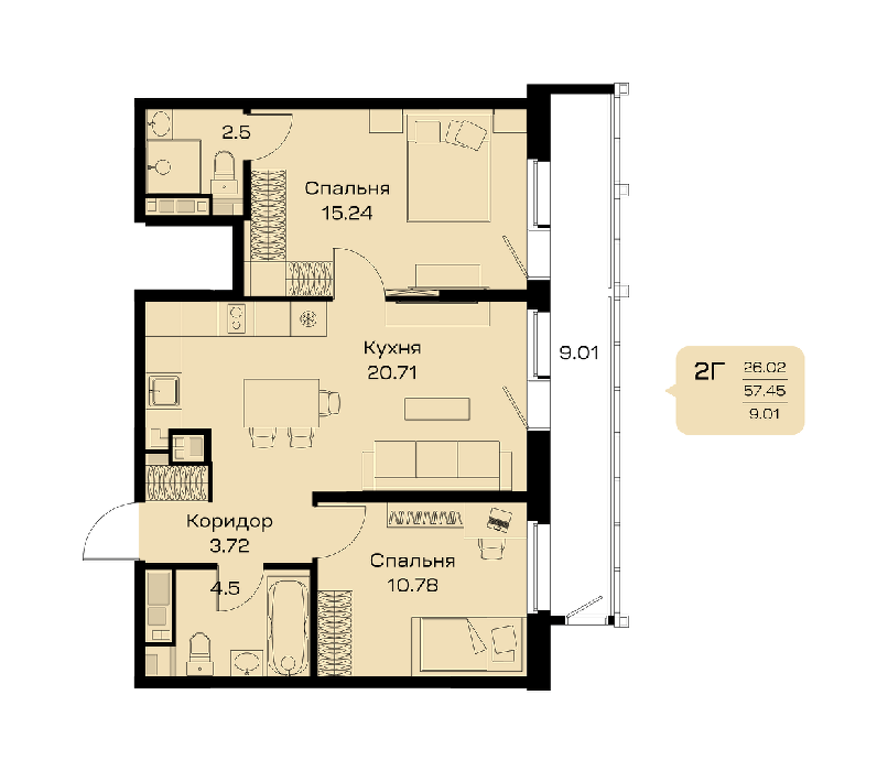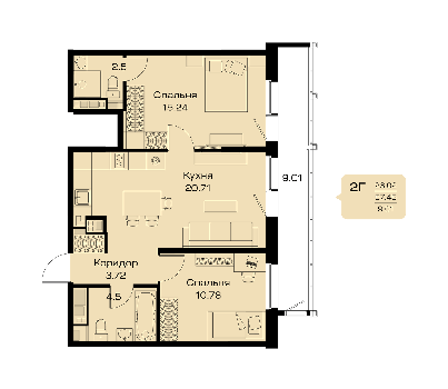 Площадь от 74.46 м2
