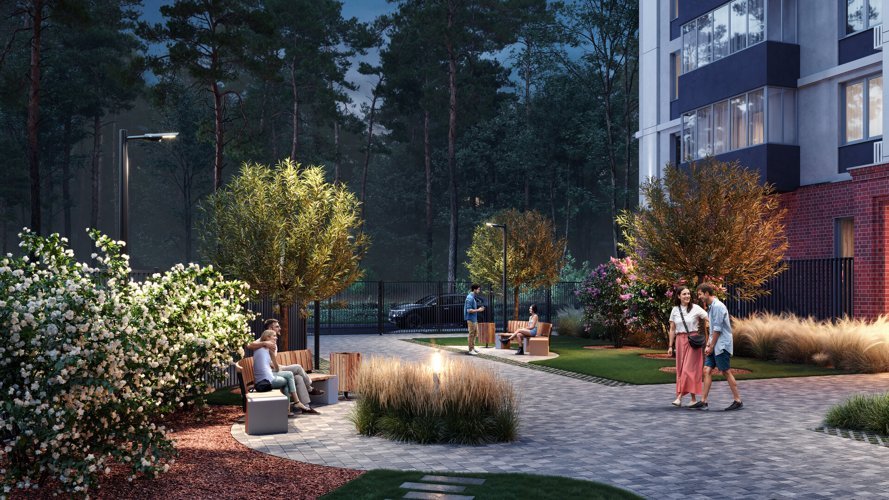 Естественным образом обособленная лесом жилая экосистема находится недалеко от ТРЦ «Аура» — самого крупного торгового центра Сургута. Территория дома примыкает к лесному массиву, открывая прекрасные и вдохновляющие виды на зеленые просторы.